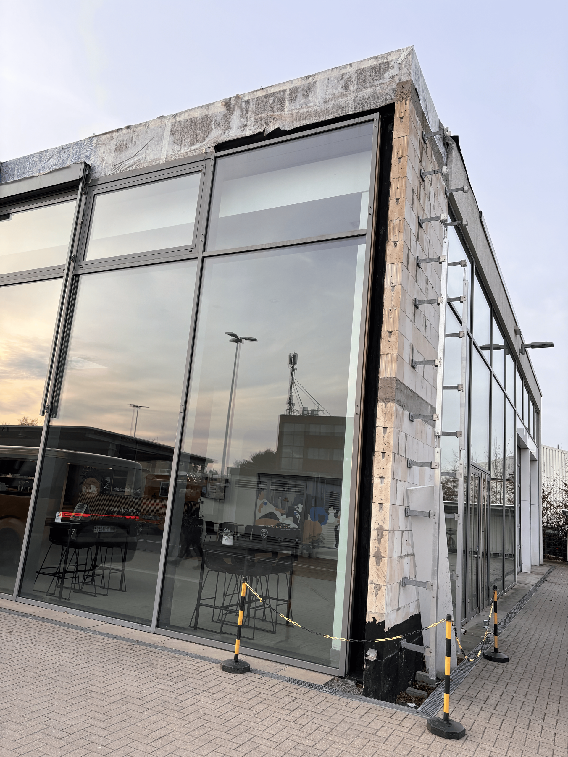 The two separate steel structures, each with a 12 x 42 m covered footprint, were erected in 1982. The roof design consists of large barrel vaults, pierced by numerous smaller arcades and secondary barrel vaults. After 40 years, the arcade facade showed significant damage.